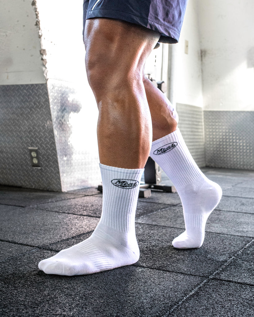 The Lifting Crew Socks fit tightly around the feet and calves. Double-padded cotton to provide the best protection and support during weight training sessions