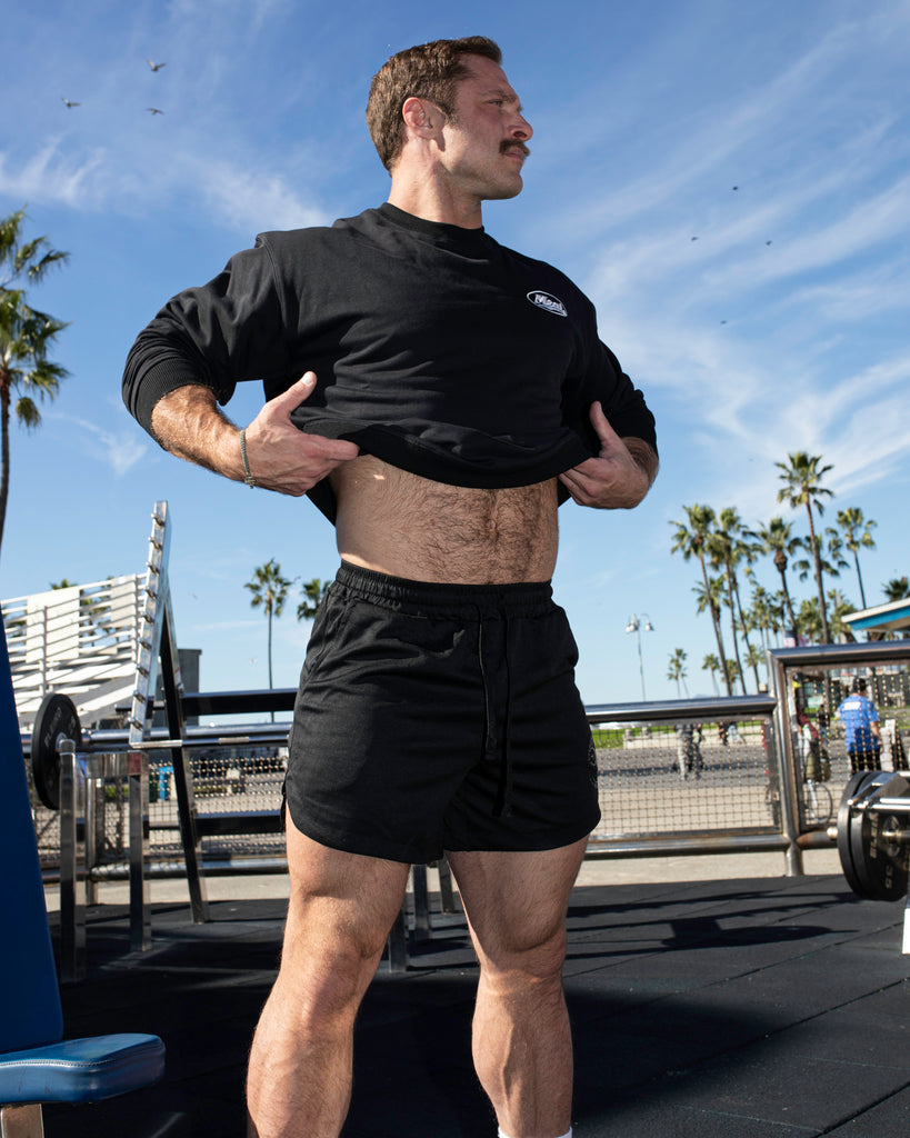 The Boxy Crewneck Sweatshirt delivers a classic old school bodybuilding fit with a wide chest, strong shoulders, and a clean, shorter length that sits right at the waist. No excess fabric, no sag. Designed for warm-ups, cooldowns, and everyday wear